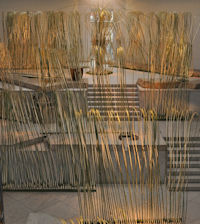 草月流創流90周年の締めくくりとして、2018年3月21日(水)~24日(土)、 草月プラザにおいて、千葉・埼玉・東京北・東京西・東京南、神奈川6支部による「∞つなぐ-関東6支部展-」が開催されました。神奈川県支部からは105名の会員の方にご参加いただきました。参加者全員でおよそ1500本の割竹を「∞」型に成形し、イサム・ノグチ石庭「天国」一面を飾ったその作品は、壮麗で多くの見学者を魅了するものでした。 制作に参加してくださった会員の皆様ありがとうございました。お寄せいただいたご感想をいくつかご紹介します。