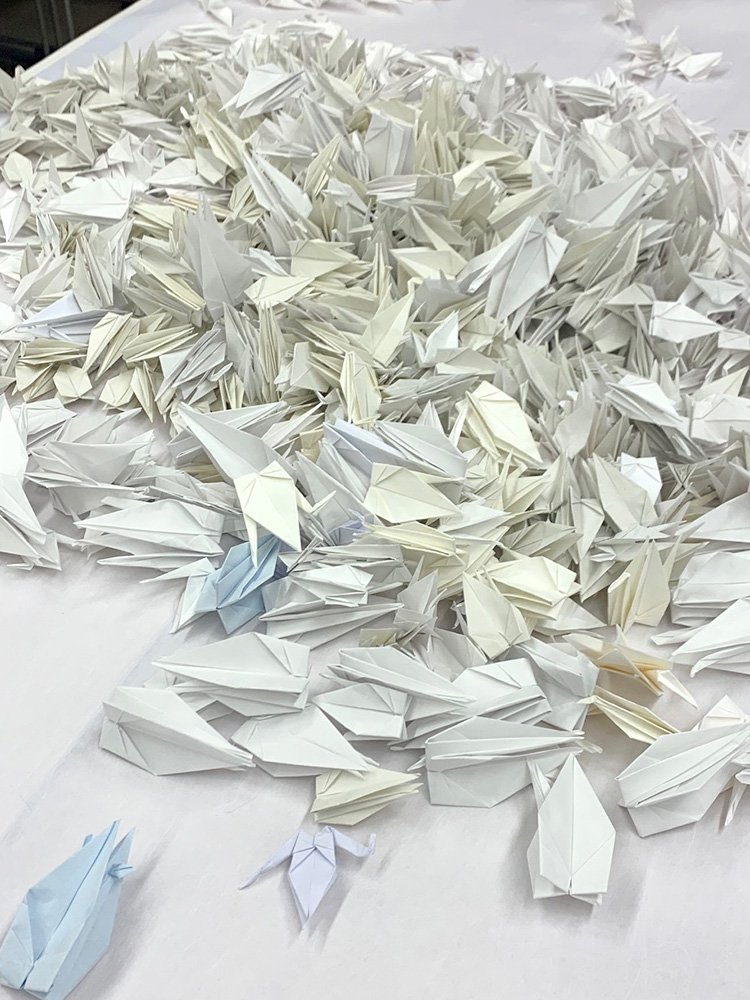 沢山の会員の皆様より、コロナの終息を願い「折鶴」を折っていただきました。