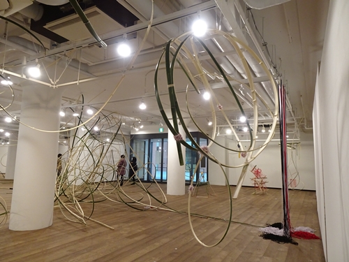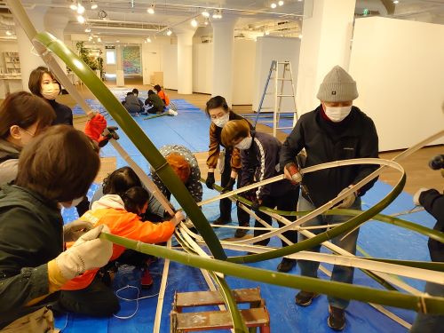 割竹と糸を使い、テーマ「愛」をかかげ、1月21日(金)~22(土)が空間構成合作、1月23日(日)~24(月)が個人作制作というスケジュールです。